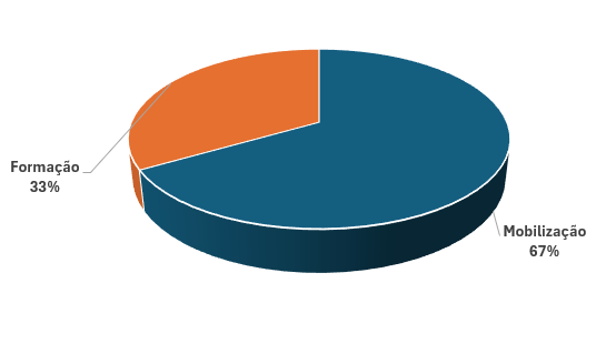 As ações de caráter quantitativo deverão alcançar, ao longo dos 24 meses estabelecidos no Termo de Colaboração, um total de 1.960 participantes. Para facilitar o acompanhamento desse público no processo de prestação de contas, as ações foram categorizadas em três dimensões: P, destinadas a aproximadamente 40 pessoas; M, voltadas a cerca de 100 pessoas; e G, com alcance médio de 300 participantes. Assim, mais do que a quantidade de ações em cada categoria, o aspecto central é garantir que a meta global de participação seja efetivamente cumprida.