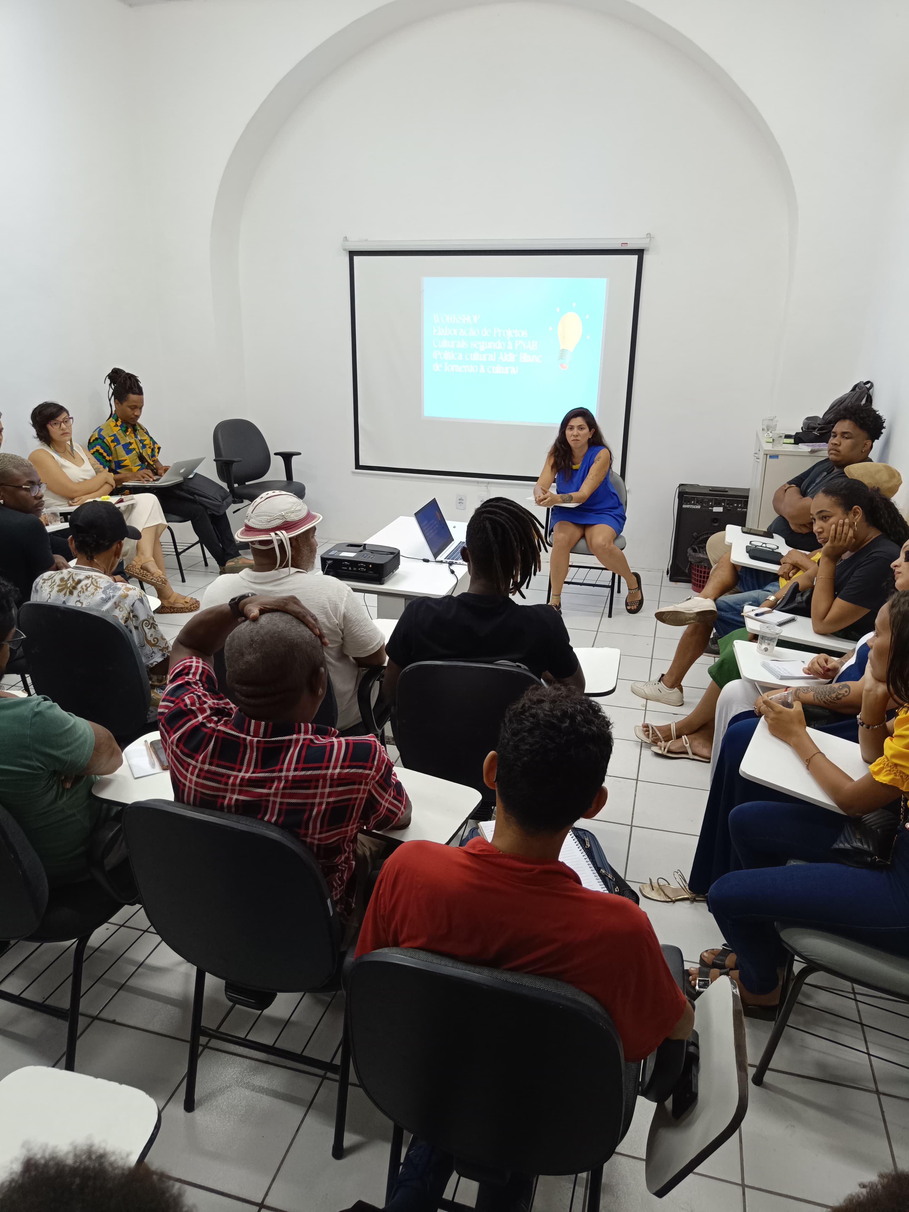 Formação voltada a grupos culturais, entidades e gestores sobre a PNAB. Foram abordados tópicos como: objetivo do projeto, justificativa, planilha orçamentária, comunicação, acessibilidade, contrapartidas e divulgação.